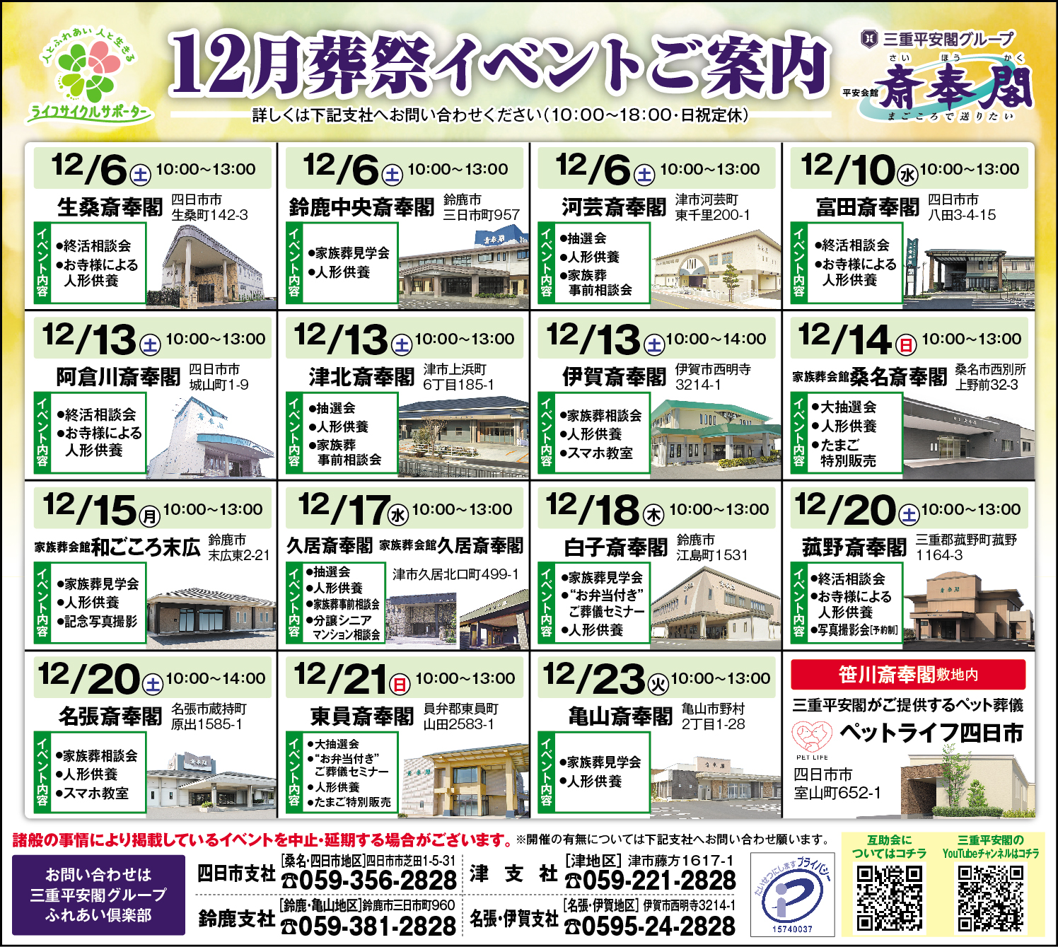 12月のご葬儀、家族葬、互助会個別相談会